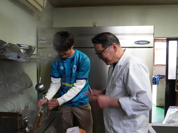 特に印象的だったのは、地元産のこんにゃくと小麦粉を合わせた麺づくりです。毎日早朝から仕込みを行い、うどんやラーメン、つけ麺、焼きそばなど、こだわり抜いた4種類の麺を作られているとお聞きし、その手間と情熱に驚かされました。